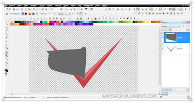 Agora, crie um novo objeto em branco naquele icone em baixo da ala objetos. Nesse novo objeto, pinte com a ferramenta preenchimento, de vermelho na área delimitada pela máscara: